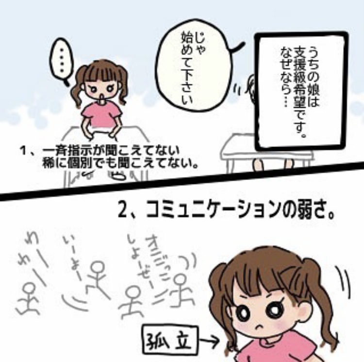 娘の就学相談①支援級希望なワケ2022.04.03娘の就学相談相談エッセイ漫画, 就学相談, 情緒支援級, 発達障害, 絵日記, 育児漫画, 育児絵日記, 自閉症スペクトラム 娘の就学相談①支援級希望なワケ 我が家は主治医、療育の先生、親の希望で 情緒支援級希望です。続きます。 3 コメントはこちら 同じカテゴリの記事 7歳から始める小児矯正歯科第8話 娘の就学相談⑨結果 娘の就学相談⑧知らなかった制度 娘の就学相談⑦就学相談の手続き完了 娘の就学相談⑥娘と小学校見学 娘の就学相談⑤WISK-IIIの結果を聞く 娘の就学相談④:WISK-IIIを受ける 娘の就学相談③小学校見学2 娘の就学相談②小学校見学1 娘の就学相談①支援級希望なワケ 前の記事 ★自己紹介 2022.04.01次の記事 娘の就学相談②小学校見学1 2022.04.05アプリなら通知ですぐ読める! NAPBIZブログ