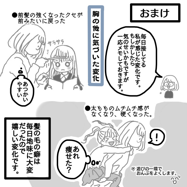 どうせなら同じ大きさに成長してくれたらよかったのに、右胸だけ変化していて正直気にしてました…(片方だけだから腫瘍なのではと思ったし💦)