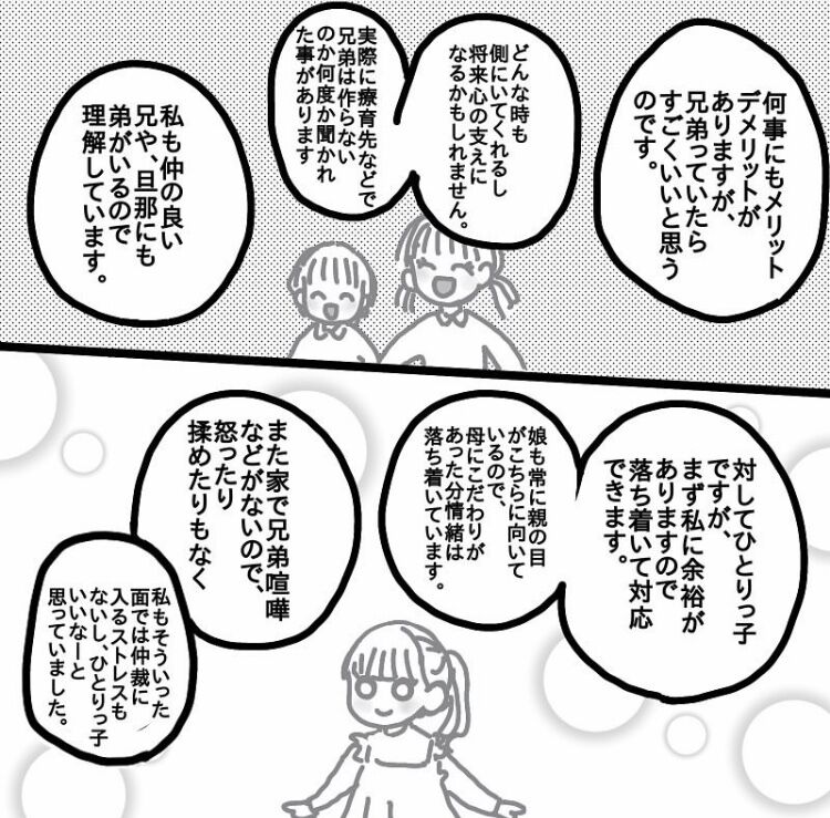 記事の兄弟かひとりっ子のメリットは簡潔に書いてるだけで、もちろん兄弟がいたって仲が悪かったりひとりっ子で寂しいなど色んなご意見があるのは承知しております🙇♀️