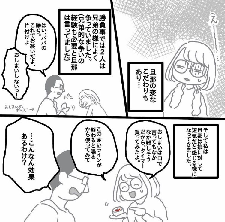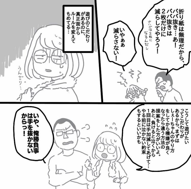 勝負事は私も参加しますが、何せ日曜日以外は2人で延々やっていたので日曜日の少し位は旦那遊んでやってって感じでした🙇♀️💦