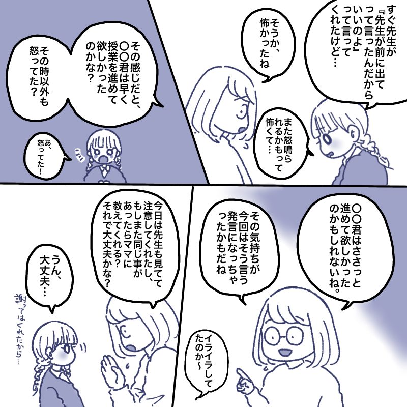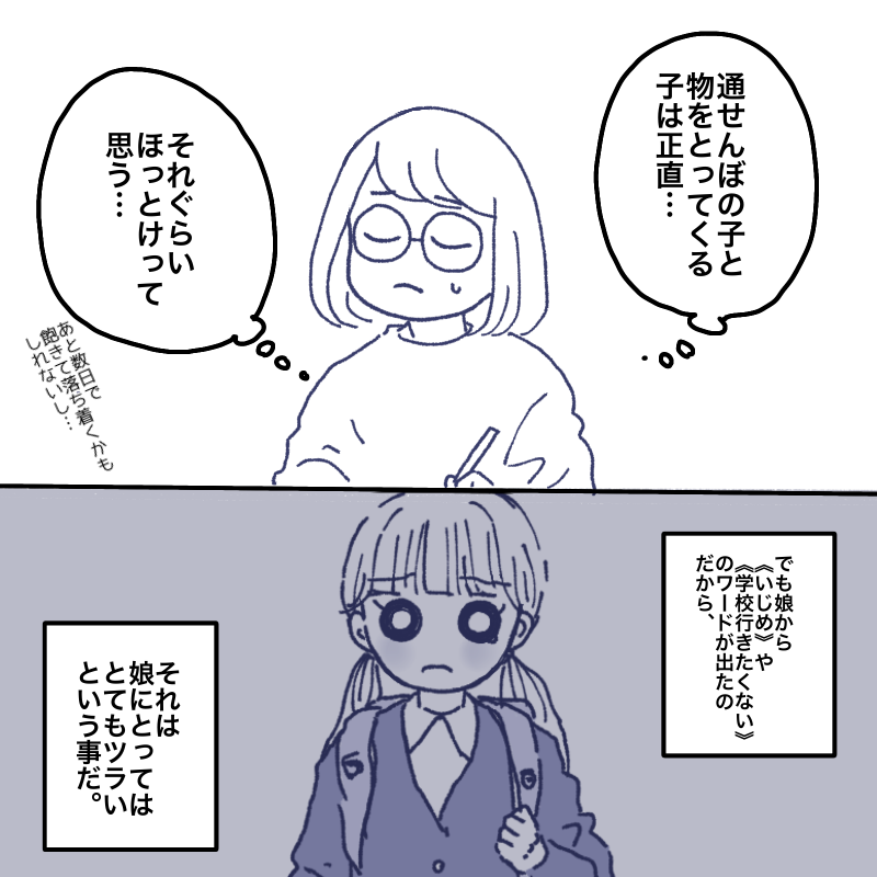 でも⬆︎の事伝えて理解してと娘に伝えても、何で何もしてない自分がそれを我慢しなくてはいけないのかとツラそうにしてました。