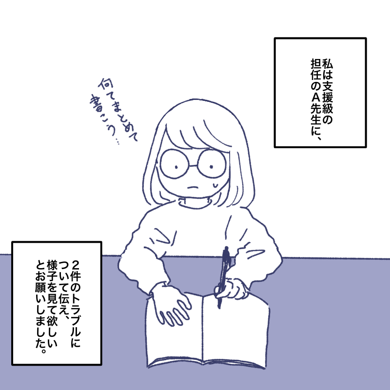 なので様子を見てもらう様お願いしました。(支援級の先生は職員室に寄ってから交流級へ行かれていたので現場は見ていませんでした。)