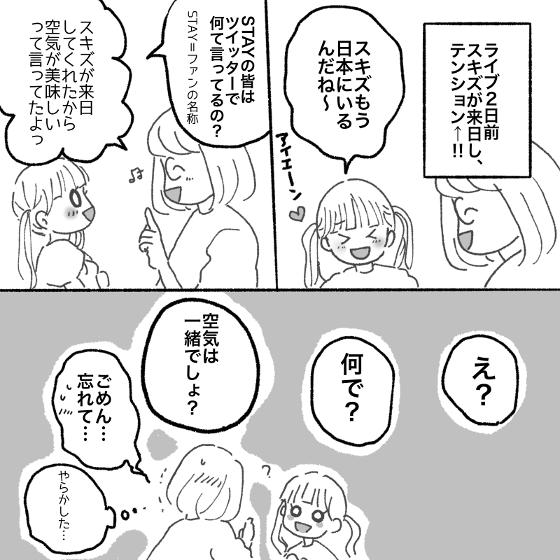 娘とk-popアイドルのライブに行きましたレポ:中編2022.06.28娘との日々Stray kids, エッセイ漫画, 発達障害, 絵日記, 育児漫画, 育児絵日記, 自閉症スペクトラム 娘とk-popアイドルのライブに行きましたレポ:中編 広告 あとがき前後編で終わるはずが終われませんでしたっ😂続きます。 0 コメントはこちら 同じカテゴリの記事 ポケモンのオリジナルTシャツ作った カービィカフェすごい:後編 カービィカフェすごい:前編 石垣島旅行に行ってきた4日目 石垣島旅行に行ってきた3日目 石垣島旅行に行ってきた2日目 石垣島旅行に行ってきた1日目 娘の手のひらが異常にふやける問題:後編 娘の手のひらが異常にふやける問題:前編 今年のクリスマス 小学4年生娘の保湿の話(過去の話) 鬼滅の刃の4DXをみた 小学5年生の娘の服が迷子 念願のベビタピに行ったよ⑦終 念願のベビタピに行ったよ⑥ 念願のベビタピに行ったよ⑤ 念願のベビタピに行ったよ④ 7月5日の予言:後編 7月5日の予言:前編 念願のベビタピに行ったよ③ 念願のベビタピに行ったよ② 念願のベビタピに行ったよ① 今まで気づかなかった娘のチック症状 完結編 脂腺増殖症のレーザー治療の跡 宝石の国を観たよ。 小5の娘の握力 口のトラブル増えた 娘が不登校の時の私 歯のケアの話 部屋のDIYをやったよ 最終話 今日のマミヤ家 娘の好きな服装 部屋のDIYをやったよ第5話 部屋のDIYをやったよ第4話 部屋のDIYをやったよ第3話 部屋のDIYをやったよ第2話 部屋のDIYをやったよ第1話 今日のマミヤ家 親子で観たもの。 今日のマミヤ家 春休み 娘の食事情 娘の推しのキーホルダー ハロウィンパーティーと娘③ ハロウィンパーティーと娘② 家族でmbti診断したよ ハロウィンパーティーと娘① 4年生になってからの事、これからの事 親子で行く沖縄旅行最終日 今日のマミヤ家 夏休みの様子 娘のギリギリ睡眠事情:終 親子で行く沖縄旅行3日目 親子で行く沖縄旅行2日目 娘のギリギリ睡眠事情⑦ 親子で行く沖縄旅行1日目 娘のギリギリ睡眠事情⑥ 娘のギリギリ睡眠事情⑤ 夏休みの宿題の話 娘のギリギリ睡眠事情④ 娘のギリギリ睡眠事情③ 娘のギリギリ睡眠事情② 娘のギリギリ睡眠事情① 推しのハイタッチ会に行った話③終 推しのハイタッチ会に行った話② 娘が間違えて課金してしまった話最終話 娘が間違えて課金してしまった話第4話 娘が間違えて課金してしまった話第3話 娘が間違えて課金してしまった話第2話 娘が間違えて課金してしまった話第1話 春休みの様子③ 春休みの様子② 春休みの様子① 娘の血液型:後編 娘の血液型:前編 日常日記 今まで気づかなかった娘のチック症状⑥終 今まで気づかなかった娘のチック症状⑤ 夏休みの記録:はじめての美容院 日帰り観光に行ってきた:後編 娘に聴覚過敏疑似体験動画を観てもらった 娘のお金事情④完 娘のお金事情② 娘のお金事情① しぇーちゃんお誕生日おめでとう 娘にとっても苦手な物が出来ました。と小ネタ記録 小学2年の娘の成長記録 娘とk-popアイドルのライブに行きましたレポ:後編 娘とk-popアイドルのライブに行きましたレポ:中編 娘とk-popアイドルのライブに行きましたレポ:前編 ことゆくラックをお試ししてみました。 小学2年生になりました。 推しのアイドルを使って九九を覚えた話:後編 推しのアイドルを使って九九を覚えた話:前編 LIRICOのランドセルを1年使ってみたレビュー 娘の好きな言葉 娘には支援が必要です② 前の記事 2年生の担任が叱る時「1年生にかえりなさい!」という方でした。4話 2022.06.27次の記事 2歳4ヶ月に自閉症スペクトラムと診断されるまで:プロローグ 2022.06.29アプリなら通知ですぐ読める! NAPBIZブログ