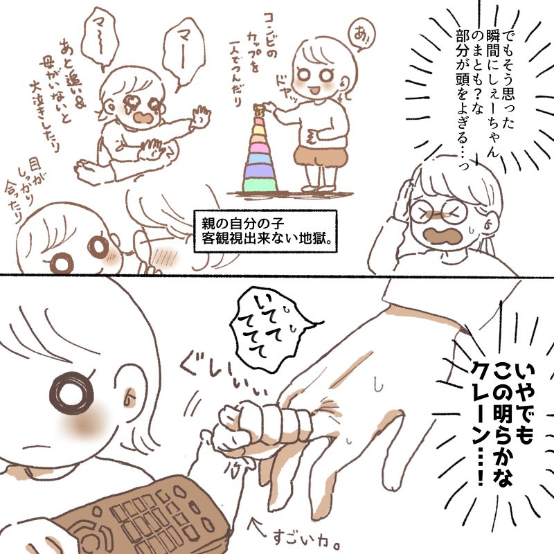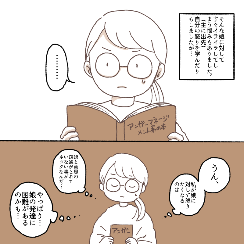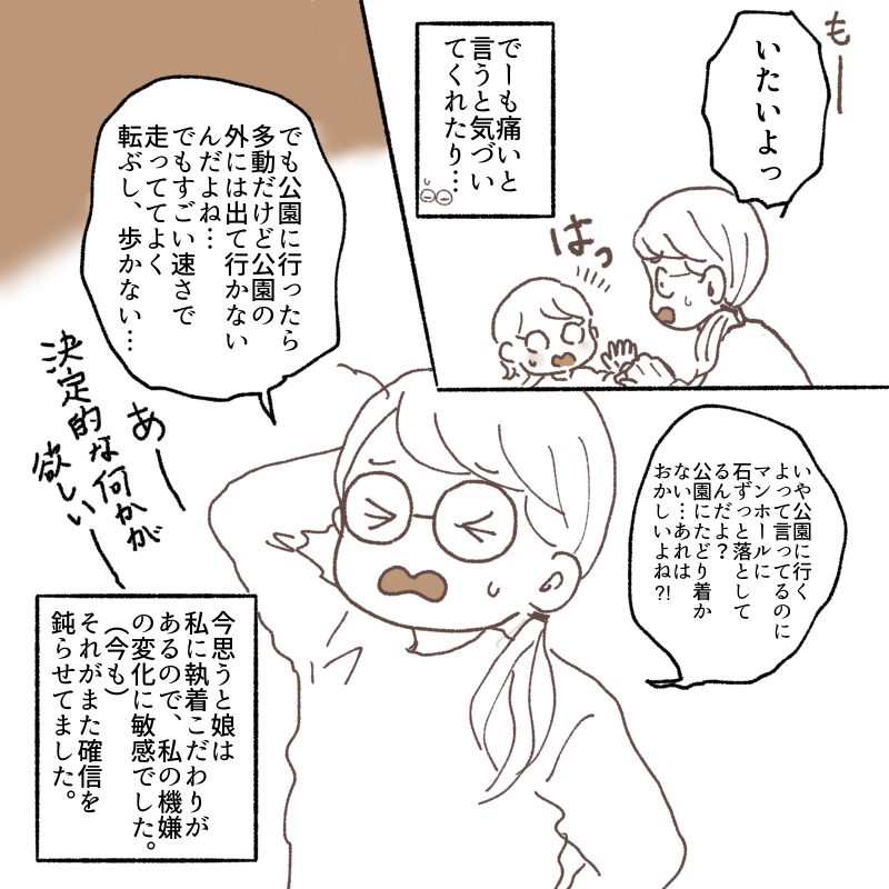 私への執着こだわりは、娘の思う「いつもの私」でない場合にとても動揺します。疲れてるとかイライラしているととても過敏に気にされます。今も私が少し怒った声を出したらとてもビビります😂