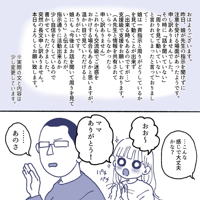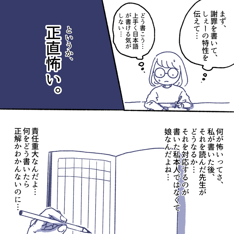 小学校に上がってから、先生に伝えたりする時に毎回「私のこの対応や態度のせいで娘が余計大変なことになったらどうしよう…」と不安で仕方ないです😭💦