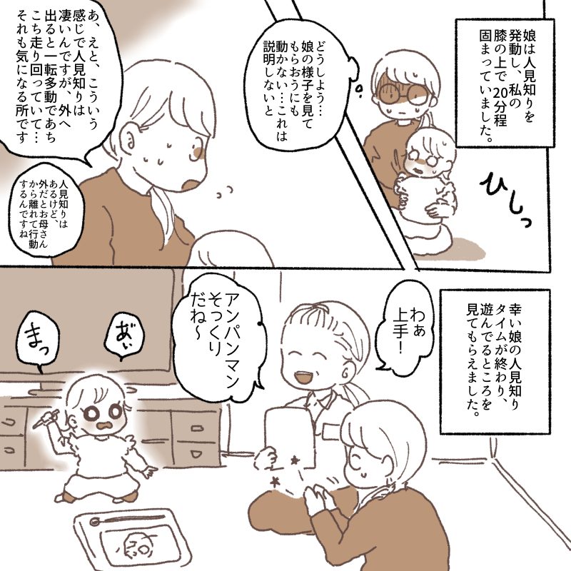 娘は人見知りを発動し、初め20分はどうしようかと思う程私の膝の上から動きませんでした💦