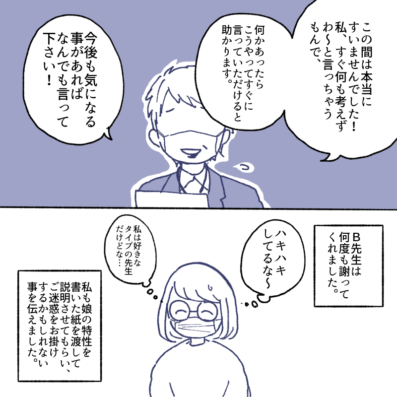 でもB先生ともしっかり話せたし、娘も落ち着いてきてホッとしました。