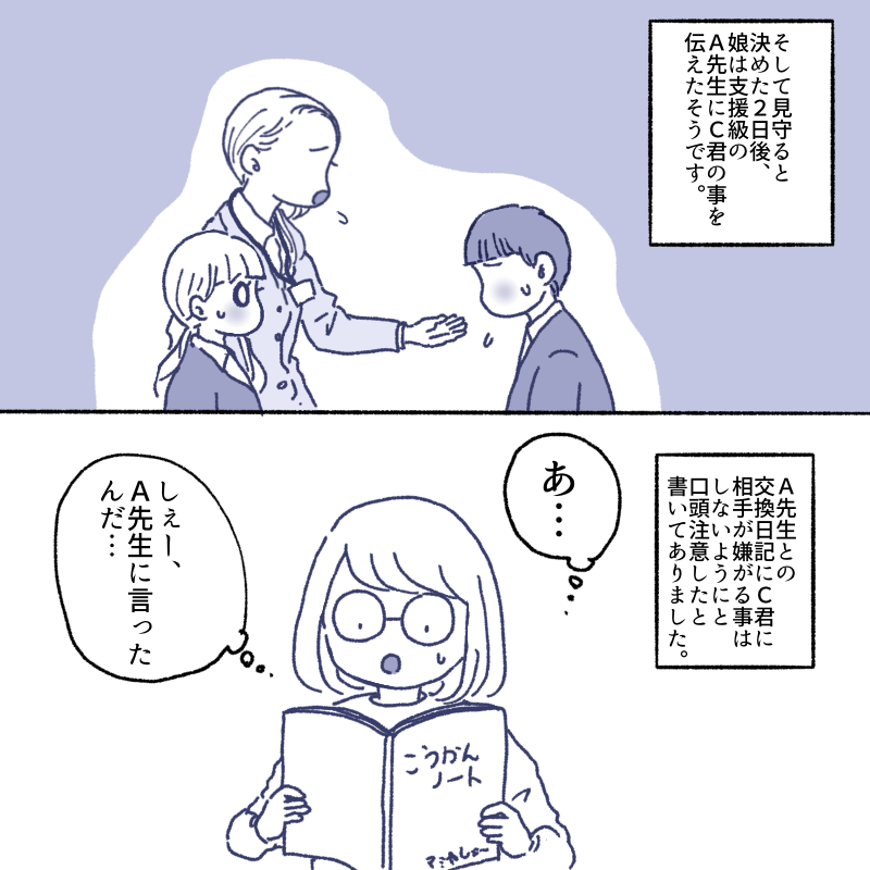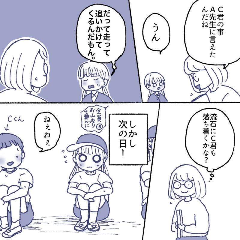 娘がどんなに伝えても、A先生に注意をしてもらってもC君のちょっかいは落ち着きませんでした。