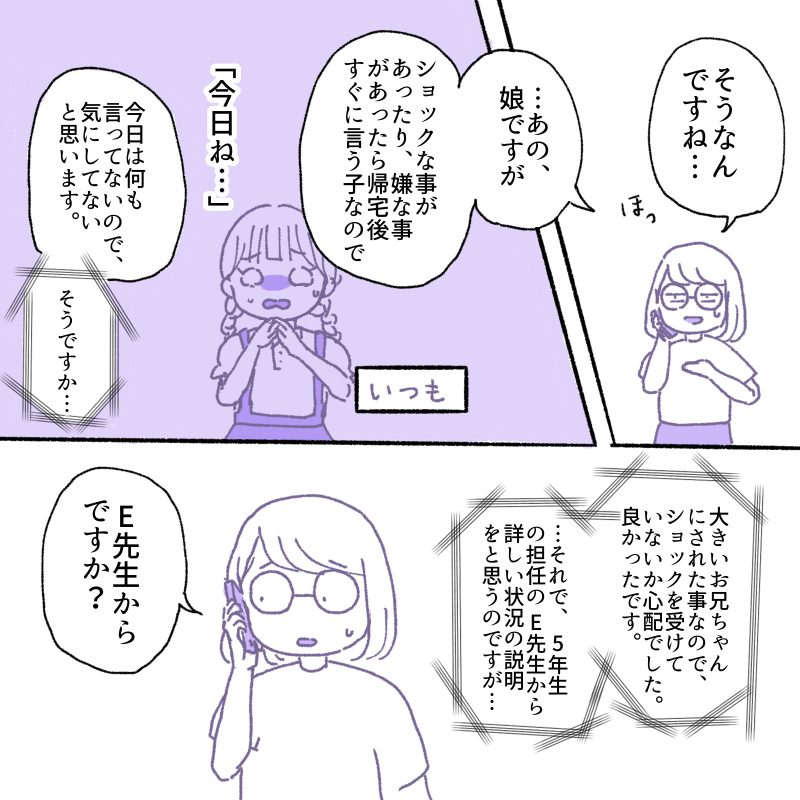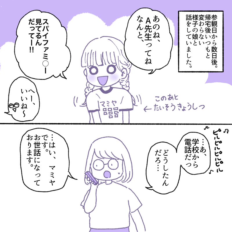 電話で聞いてびっくりしました。でも焦って娘を見たら無傷だしご機嫌でポップコーンを食べているので、「まぁ大丈夫か」と思い話をしていました。