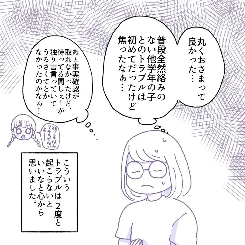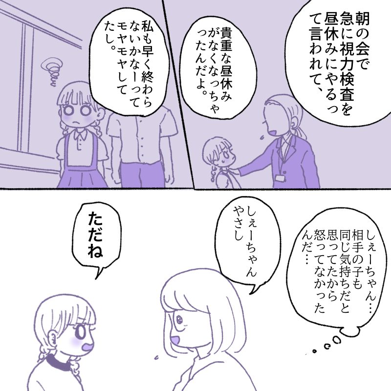 5年生の男の子は翌日すごくしっかり謝ってくれたそうです。娘を押した理由は「イライラしてたから」でしたが、私は待ち時間娘のエコラリア的独り言がうるさかったのでは…と思いました。