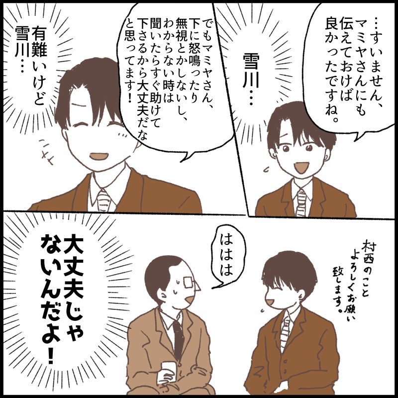 ところで旦那さんが「雪川…雪川…」って念じすぎて雪川くんも「雪川のことをよろしく」って言っちゃってますね笑