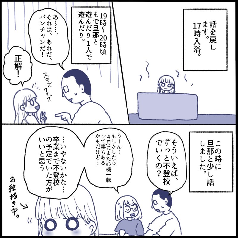 不登校は全然受け入れ態勢の旦那ですが、服薬などはその時は受け入れられないみたいでした。