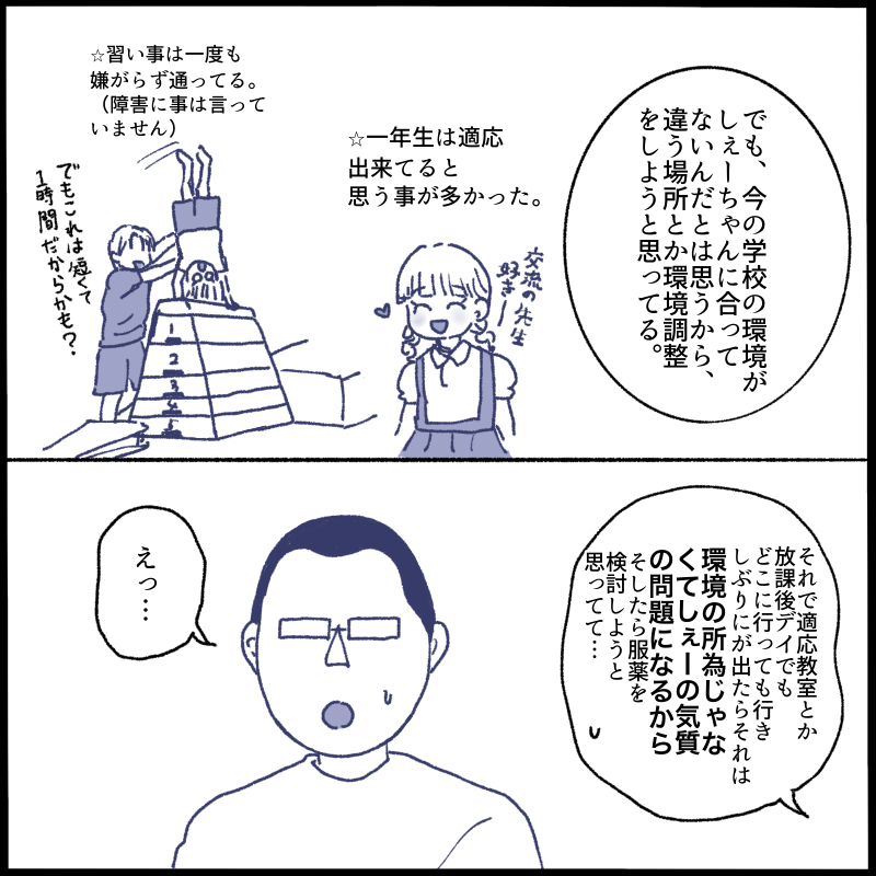 私も娘の学校の様子や家での様子で、私なりの基準としてお薬はまだ様子見かなと思っていました(今後見解を書きます)