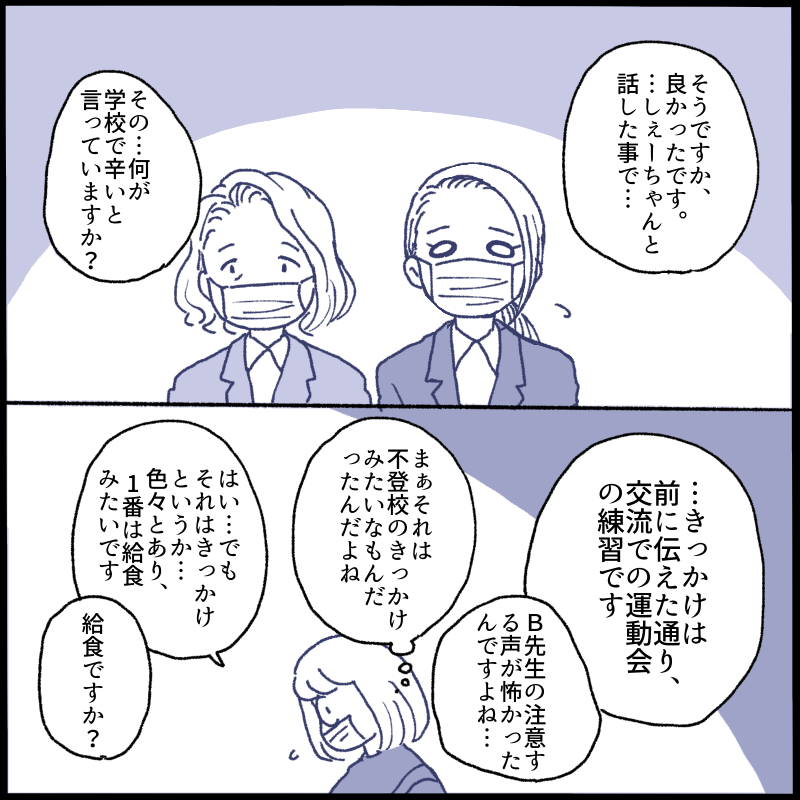 不登校一週間三日目①2023.03.29不登校一週間エッセイ漫画, 情緒支援級, 発達障害, 登校しぶり, 登校拒否, 絵日記, 育児漫画, 育児絵日記, 自閉症スペクトラム 不登校一週間三日目① 広告 あとがき水曜日は小学校の面談でした。娘の意見をきちんと伝えねばと思っていましたが支援級の主任の先生もいたので上手く話せるかちょっと心配でした☺️💦続きます。 1 コメントはこちら 同じカテゴリの記事 不登校一週間 最終話 不登校一週間五日目③〜七日目① 不登校一週間五日目② 不登校一週間五日目① 不登校一週間四日目 不登校一週間三日目⑤ 不登校一週間三日目④ 不登校一週間三日目③ 不登校一週間三日目② 不登校一週間三日目① 不登校一週間二日目② 不登校一週間二日目① 不登校一週間一日目③ 不登校一週間一日目② 不登校一週間一日目① 前の記事 不登校一週間二日目② 2023.03.25次の記事 不登校一週間三日目② 2023.04.06アプリなら通知ですぐ読める! NAPBIZブログ