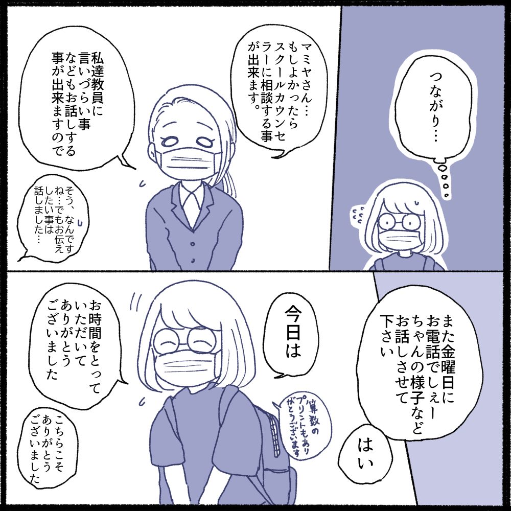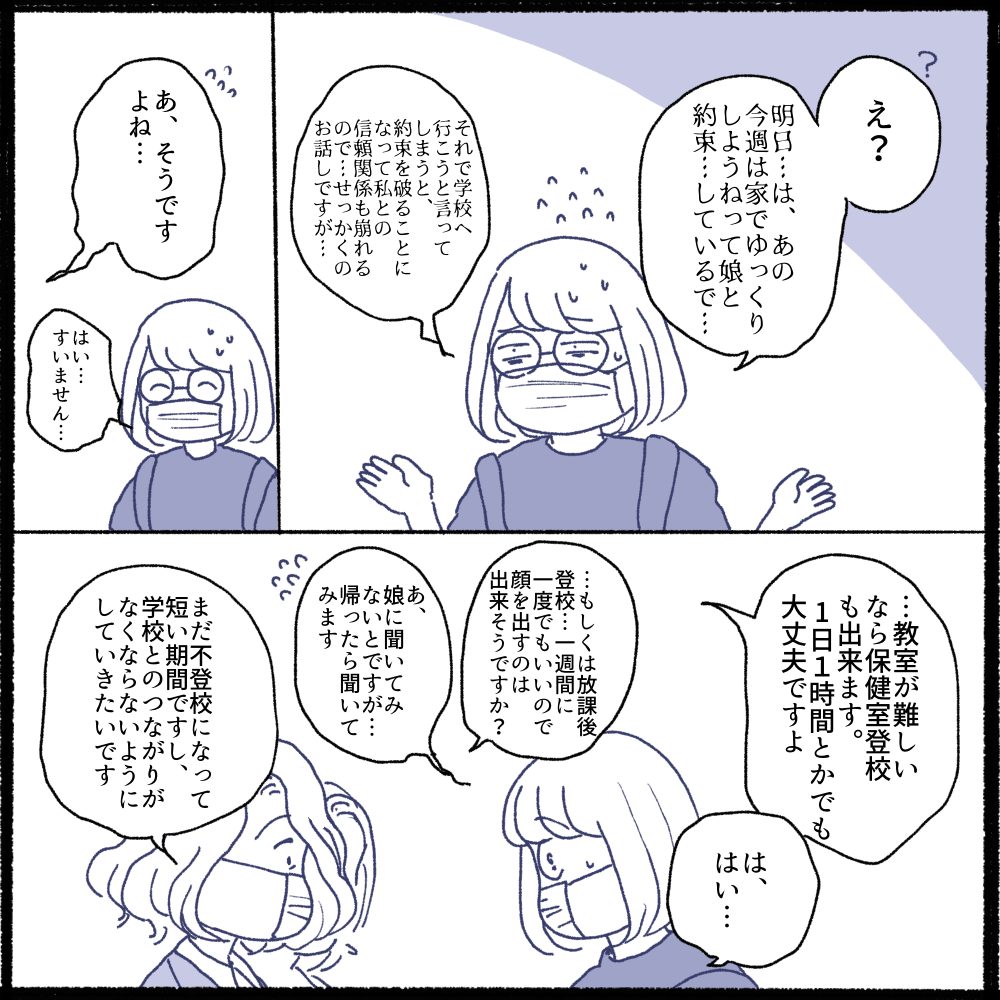娘が何とか学校と繋がれる事を提案してくれてたと思います。 スクールカウンセラーはこの時特に相談する事がなかったので希望しませんでした(娘は病院の受診予約したし)