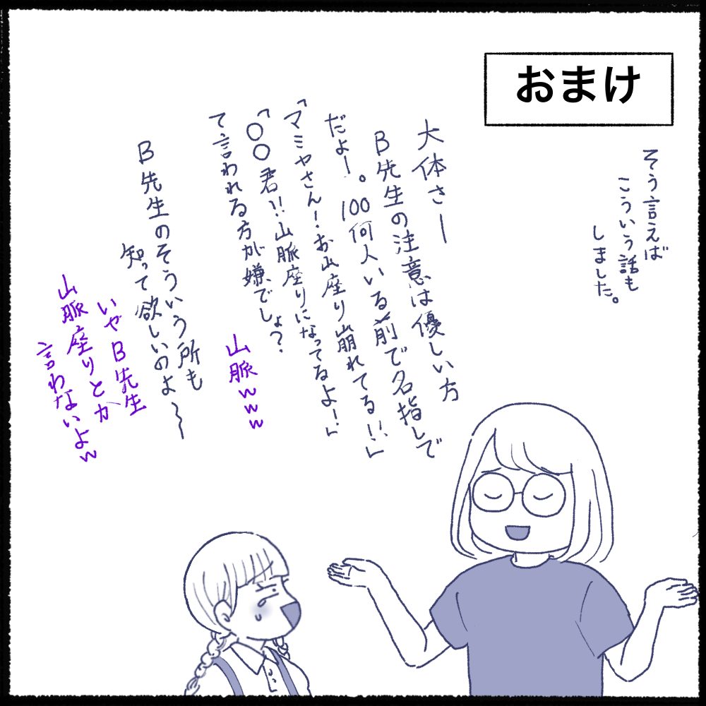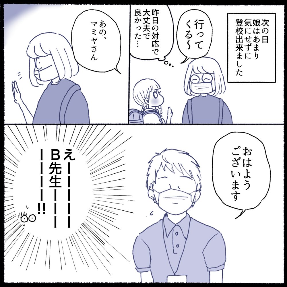 そして上手く落ち着いた次の日、B先生に話しかけられます。