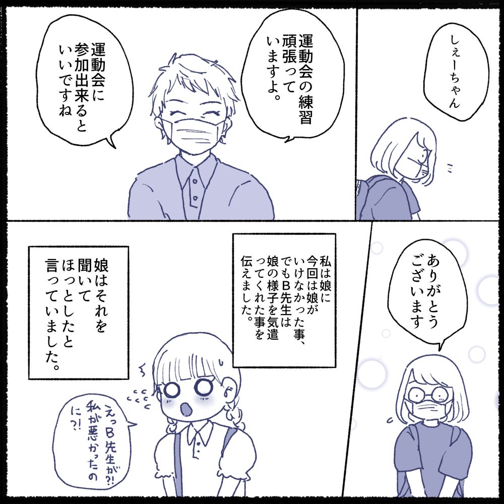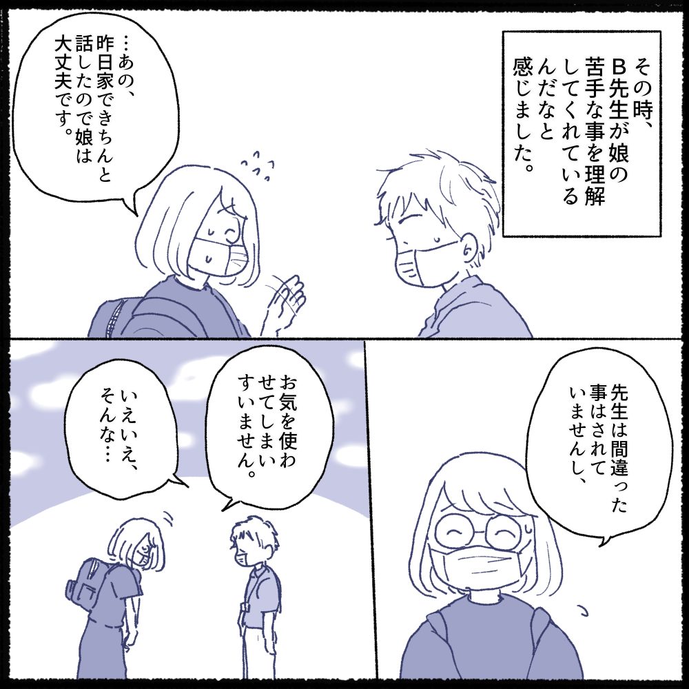 まさかB先生の方から娘の様子を聞かれると思ってもいませんでした(今回の事は娘と話し合い娘も納得していたので誰にも伝える予定はありませんでした)