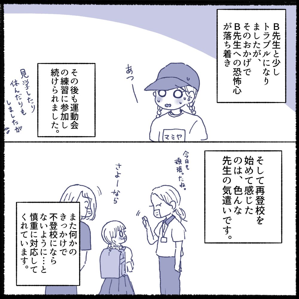 でもB先生と話した様子を伝えたら、しぇーちゃんは「先生も強く言い過ぎちゃったって思ってくれていたんだ👀✨」と落ち着きました。