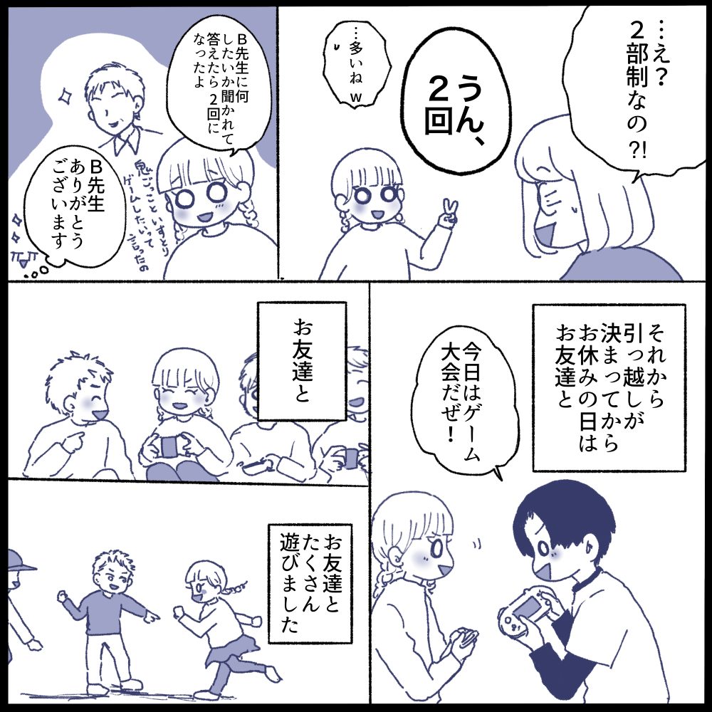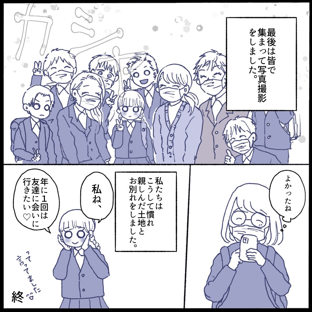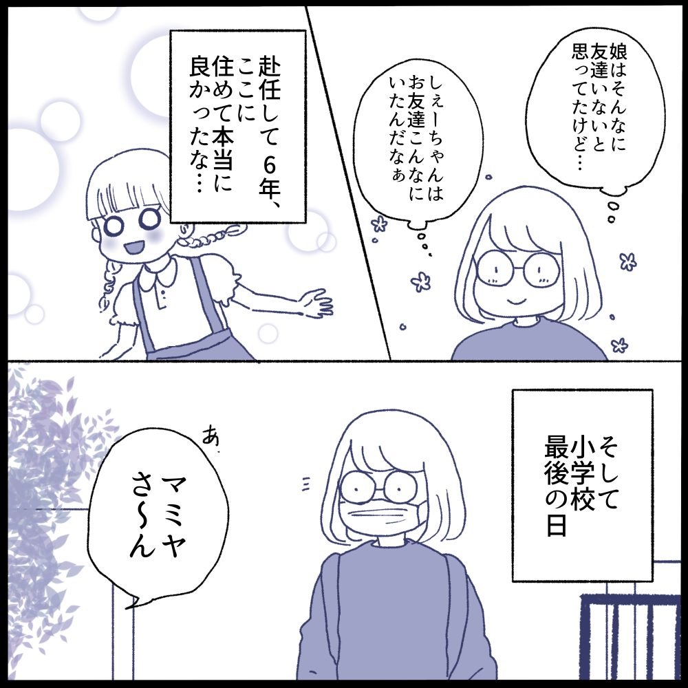 私は娘の前で引っ越しのマイナスな雰囲気を出さないように努めていたので、漫画ではかなり前向きに割り切ってるように見えるかもしれませんが…とても寂しかったです😭