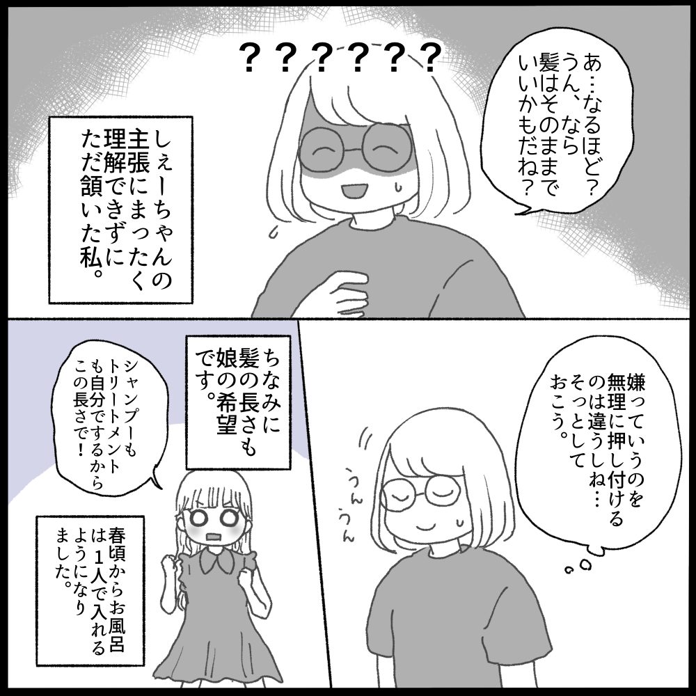 髪の長さも娘の希望です。3年生になって自分で洗うか髪を短くするか話し合い、娘が自分でお風呂に入って洗うことになりました✨
