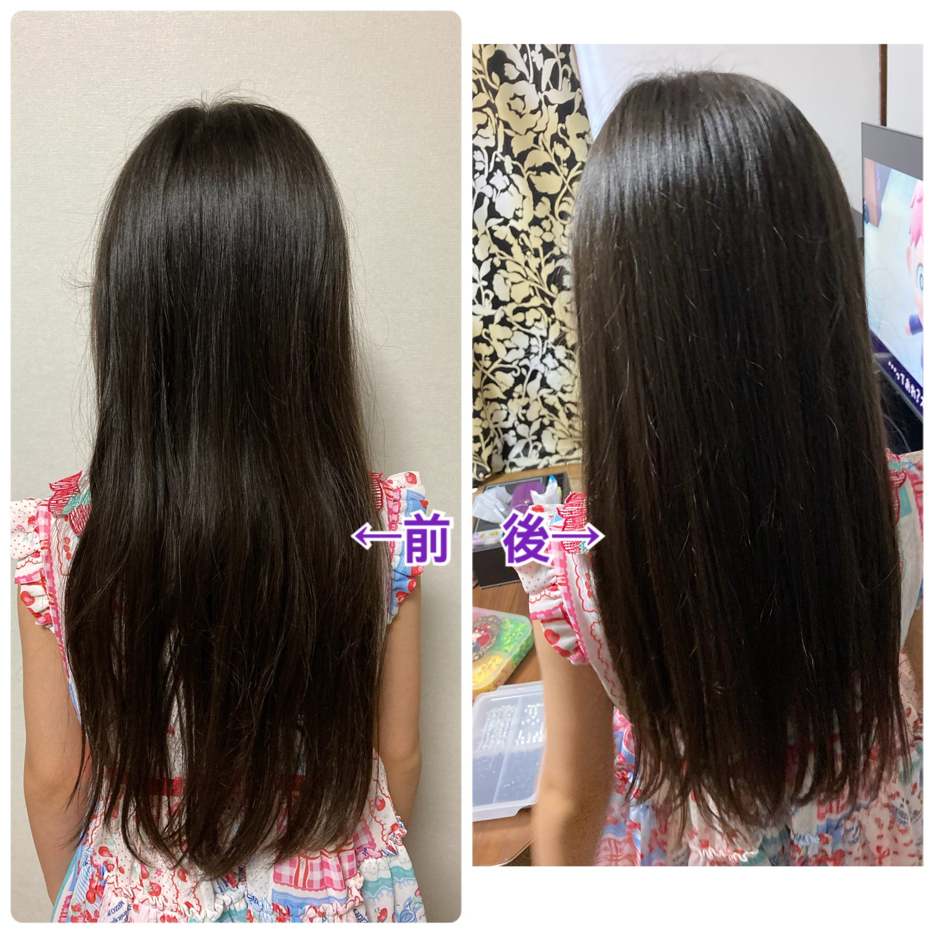 やはりくせがあるので、想像してたより見た目サラサラになりませんでした…っ(娘は前髪と内側?にくせがあるタイプ)