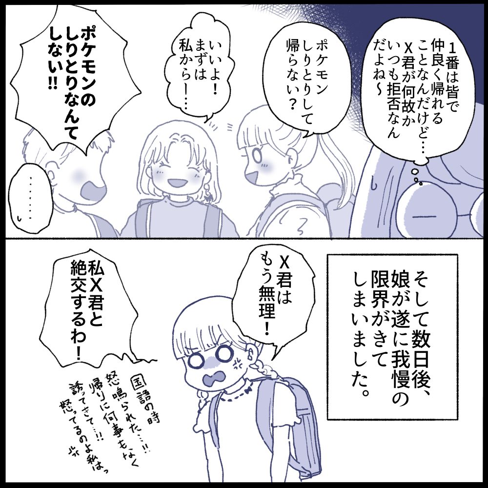娘は大きな声で怒るX君が苦手になっていきました。