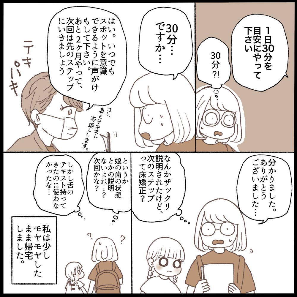 契約後(1期代支払い済み。検査代は別途支払い済み)にすぐトレーナーのトレーニングがはじまったのですが、レントゲンなどの結果や娘の口の中の様子などの話がなかったので「あれ?」と思いました。
