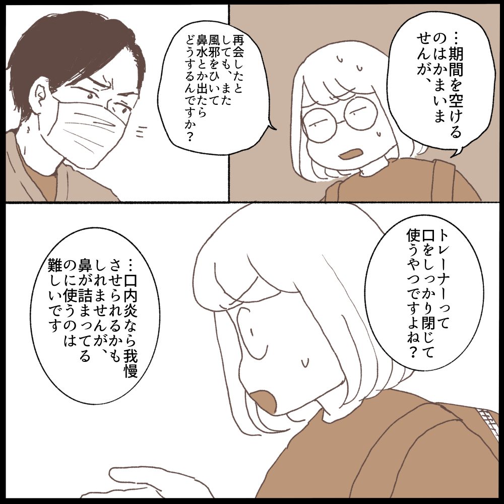 この先生は「何があっても毎日しなさい」と圧が強かったです💦でもお休みの期間をあけたって鼻風邪ひいたら出来ないし…出来ない場合はどうしたらいいか聞きました。