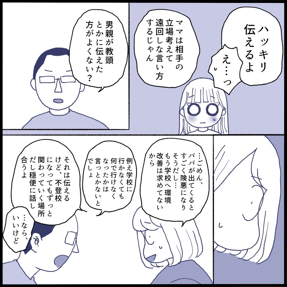 しかし旦那はストレートに話すタイプ。歯医者とは違い不登校になっても親はずっと関係を続けていかなくてはいけません。不登校になると、親が学校へたくさん出向きます😂揉めはしましたが基本的に穏便にいきたいのです。