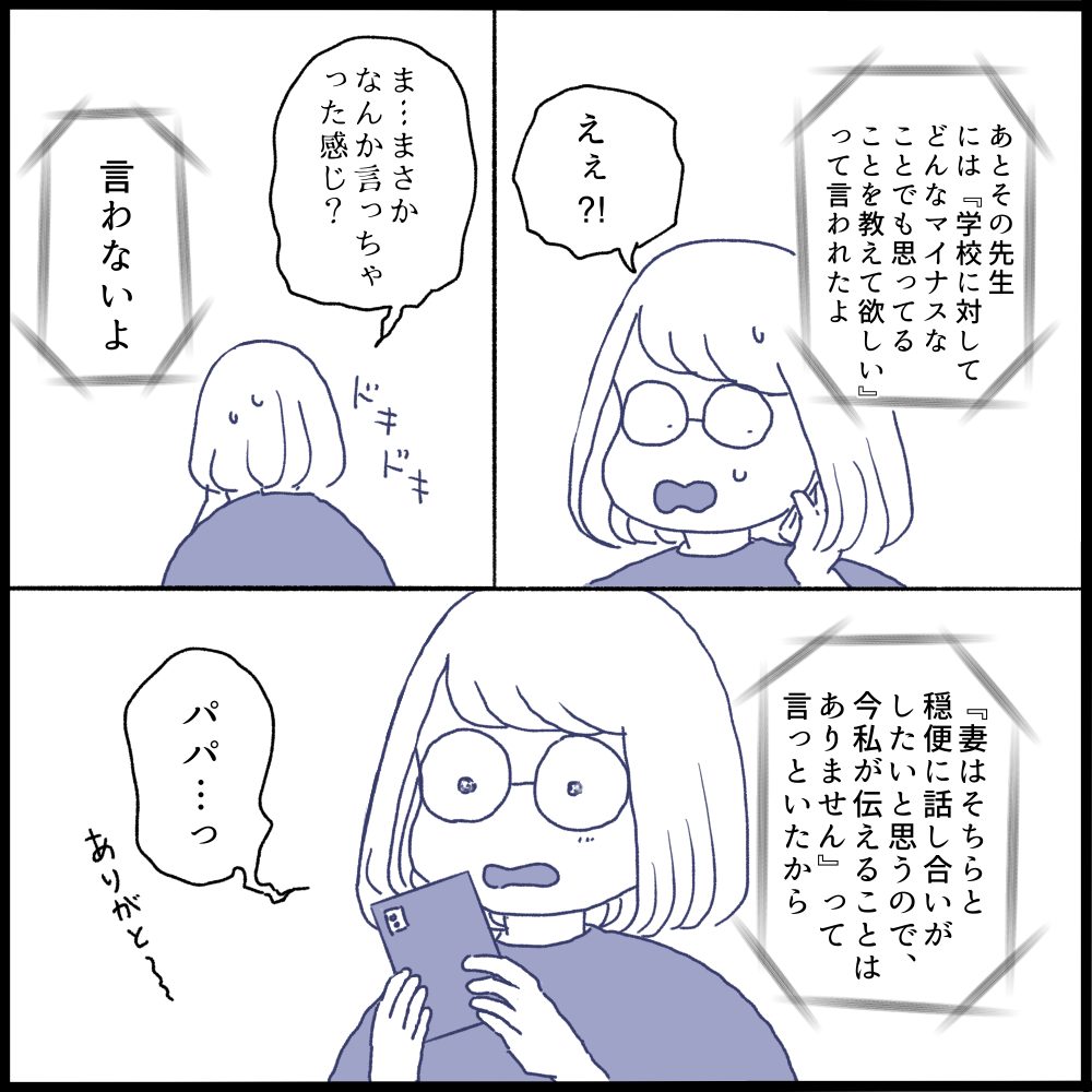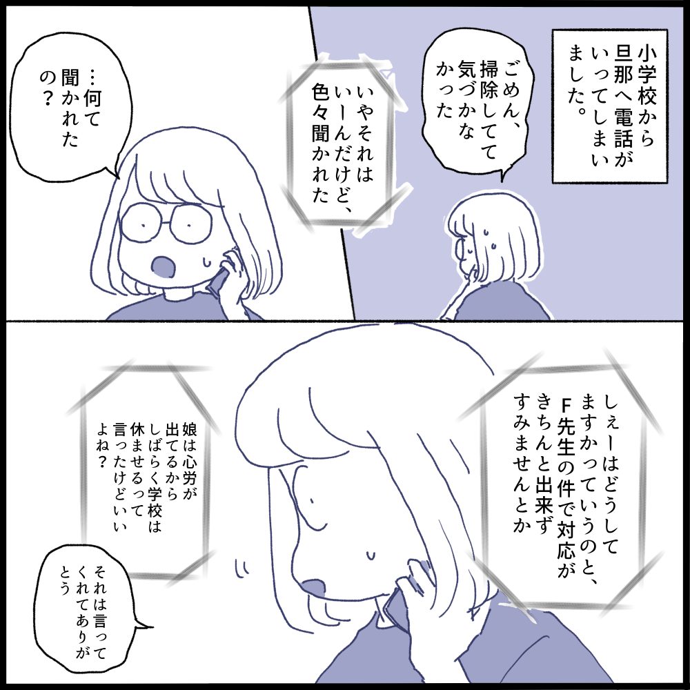小学校からF先生が同席するかどうか聞かれるとは思いませんでした(電話をかけてきたのが主任の先生ことも気を使ってくださったのだと思います)F先生と会うのは緊張しましたが、承諾しました。