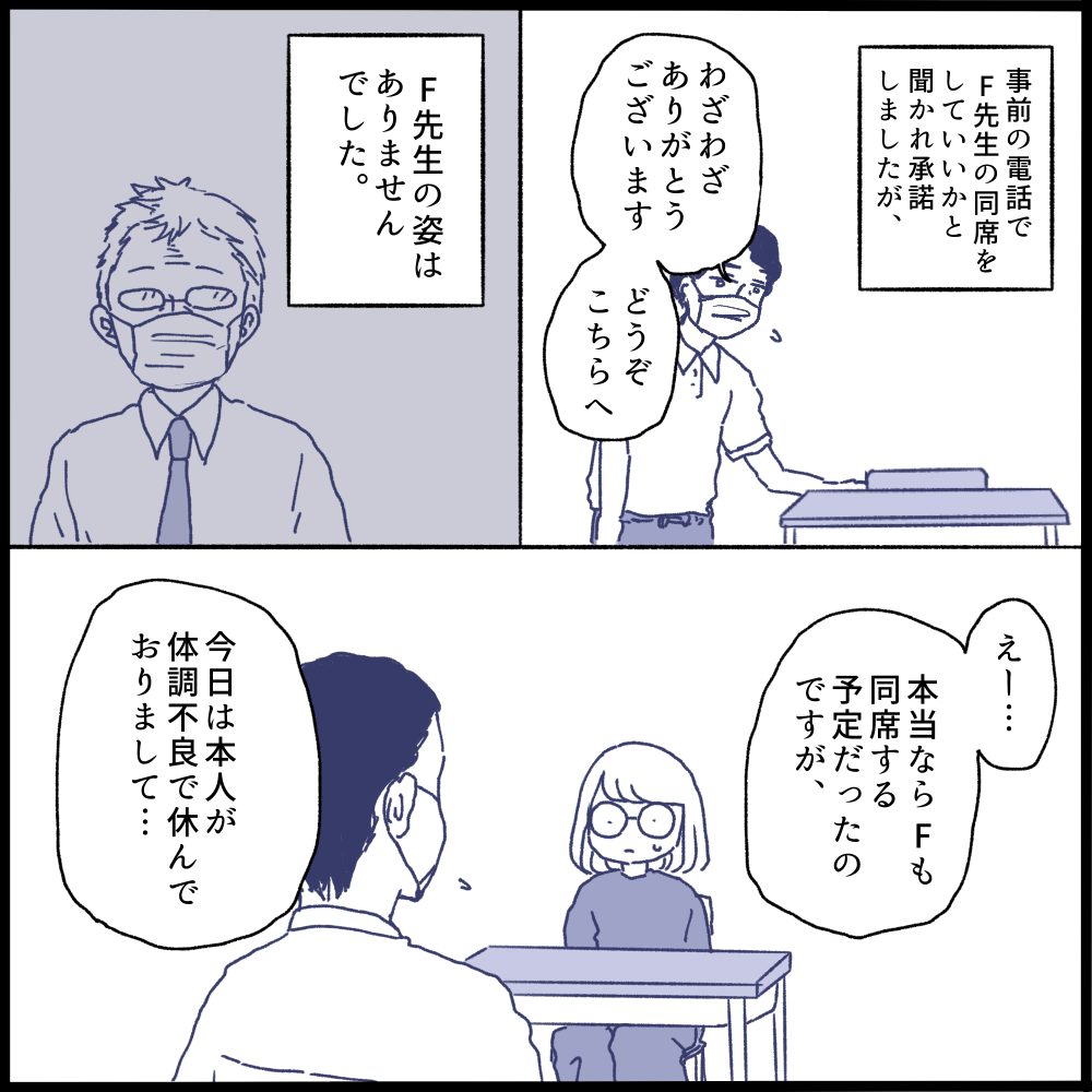 そして話し合いの場にF先生は欠席でいませんでした。