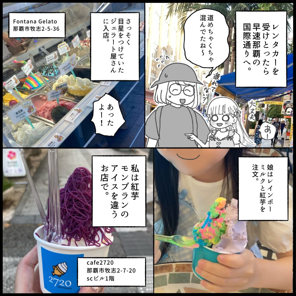 国際通りへ道がとにかく混んでて💦なんとか着いてカラフルなジェラート屋さんに❤️美味しかった〜しなこちゃんのサインが飾られてて娘が興奮してましたw