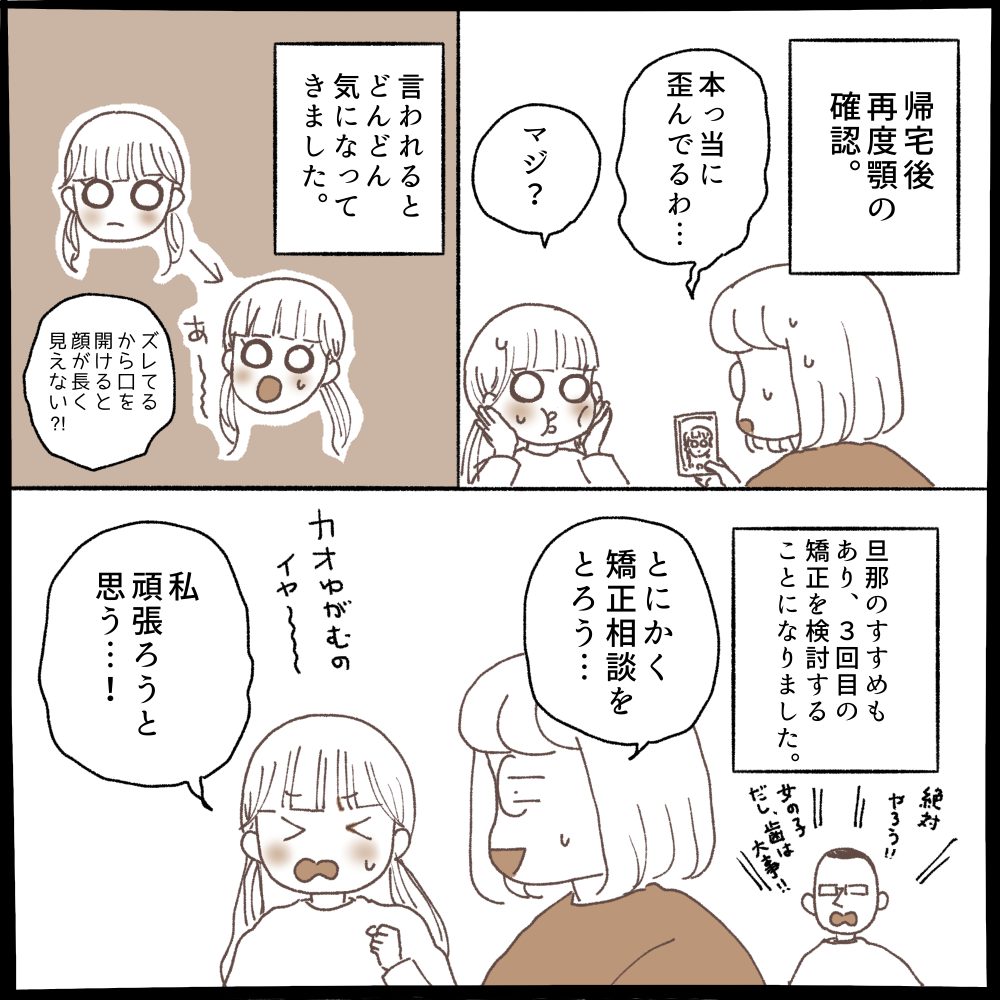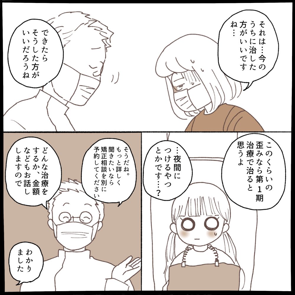 顎がズレると顔も長く見えるし、そのまま歪んだ輪郭になって(これも顎関節症のリスク高め)大人になって治そうにも外科手術になるとのことなので私たち親子はまた矯正をはじめよう思いました。