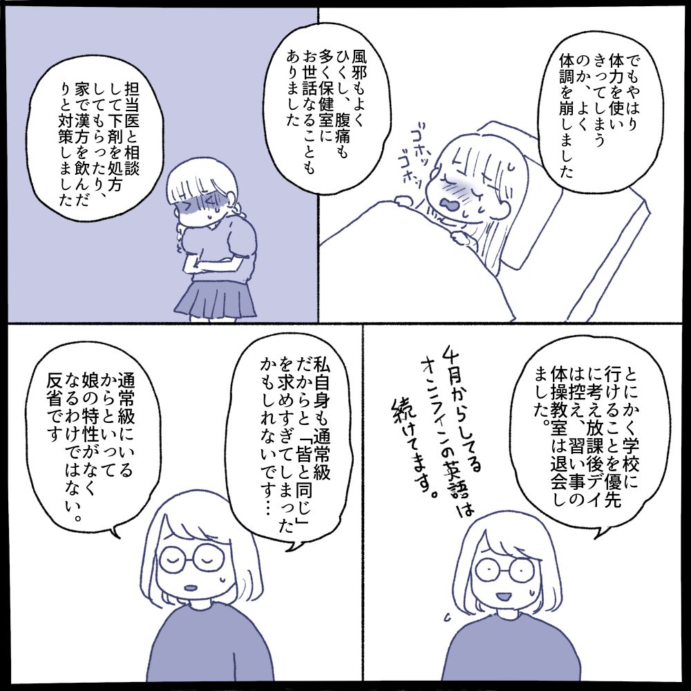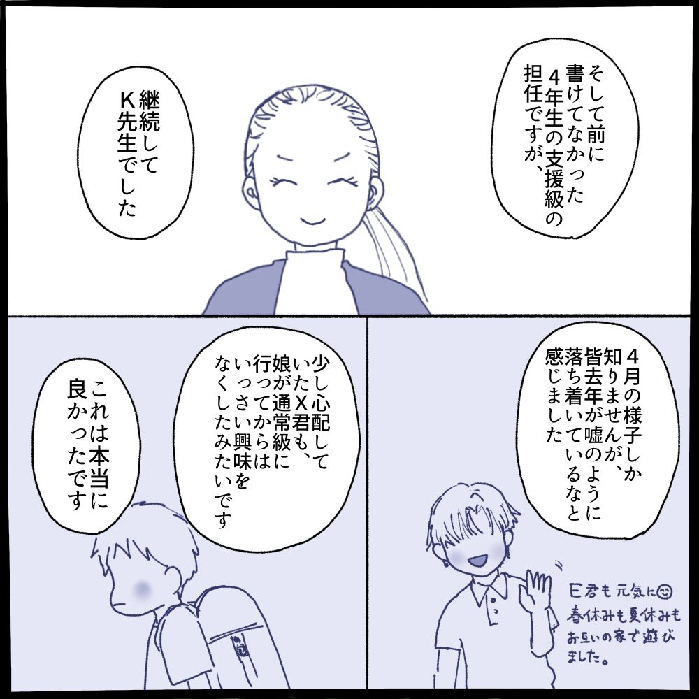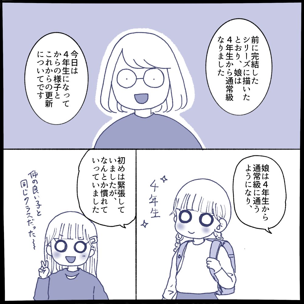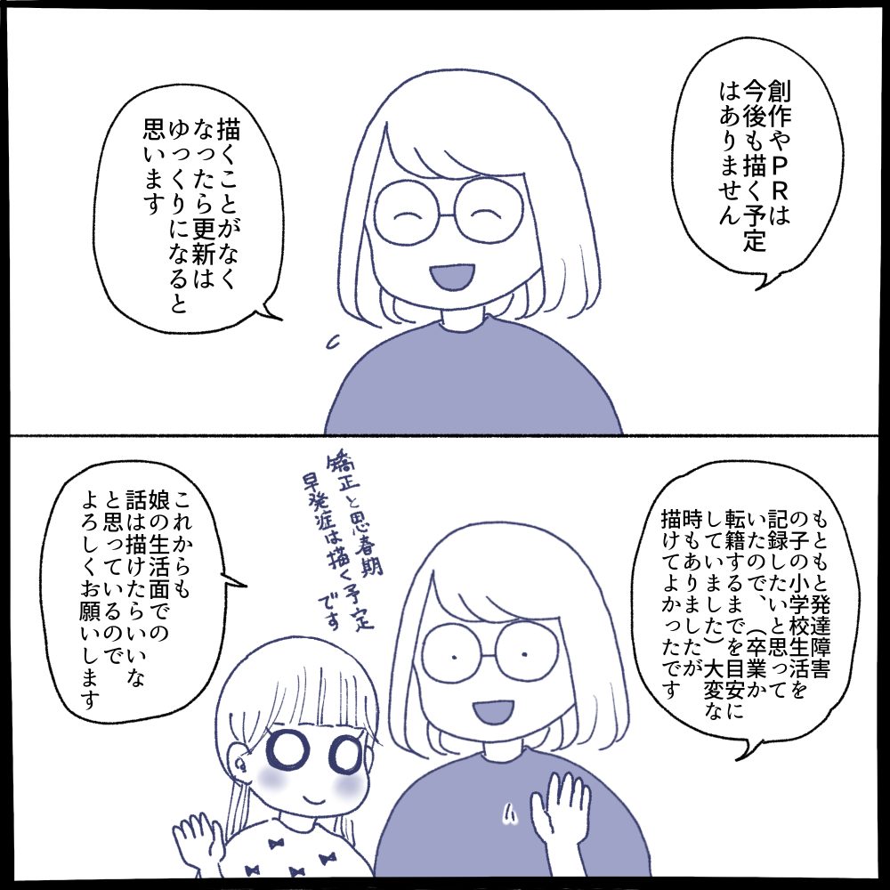 途中で発達障害がある子は就学すると更新が止まる方が多いと気づき、出来たら学校生活の様子も描きたいな…卒業するところまで描けたらいいなと考えていました。(転籍はしないと思っていたけど、もし転籍するならしたタイミングで)
