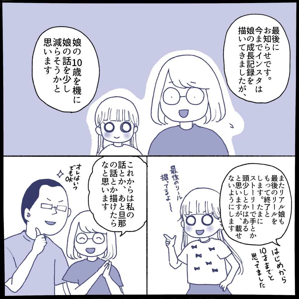 成長の記録としてたまにあげていたリアル娘の登場はあと1回リールあげたら今後はあげません。もともと成長期前くらい…10歳で終わりと考えていました。