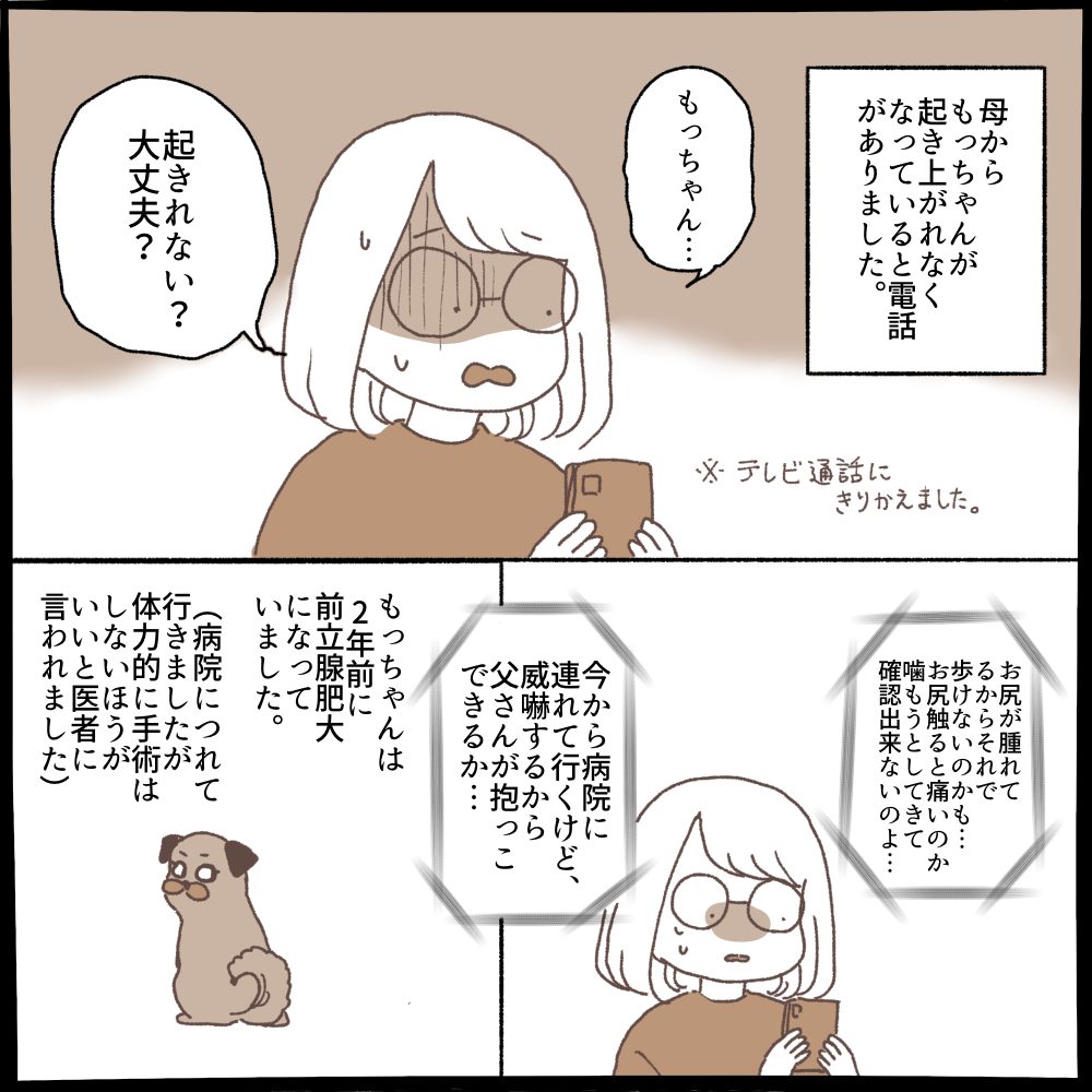 すぐにテレビ電話にしてもらいもっちゃんの様子を見させてもらいましたが、声がけにも反応があるようなないような😭