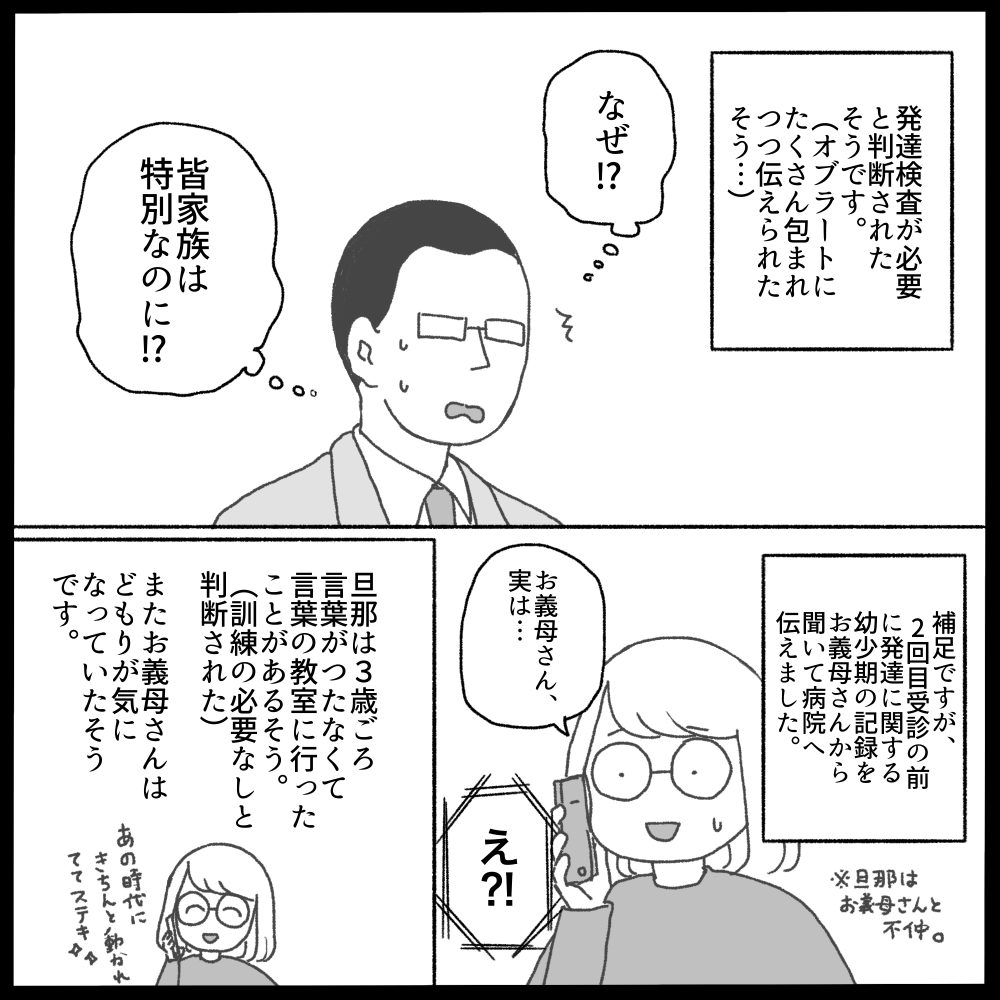 そして発達検査ですが、旦那一言で「やっておきましょうか」となったのですが旦那は「家族」と「それ以外」の線引きがかなりすごくて…自分の親や兄弟の誕生日の詳細を覚えてないとか、甥っ子姪っ子の名前が覚えられないとか…