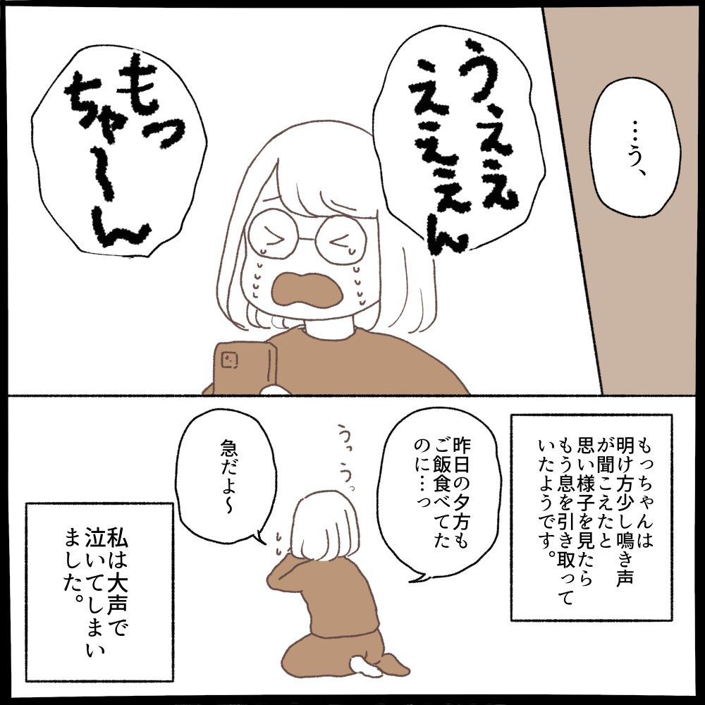 もっちゃんに会ったあとも、毎日ご飯を食べて排便も出てると聞いていたので歩けないけど元気なんだ☺️と思っていたので突然のお別れに大泣きしてしまいました…