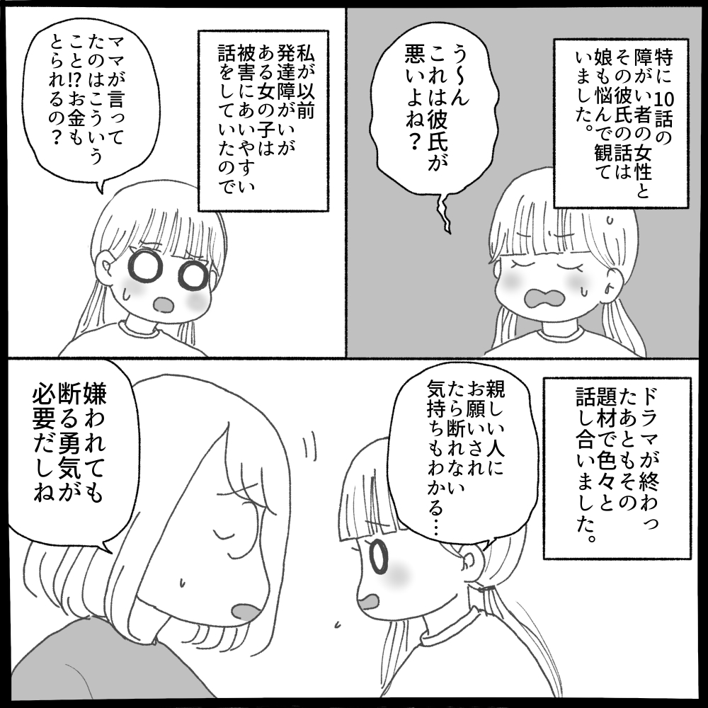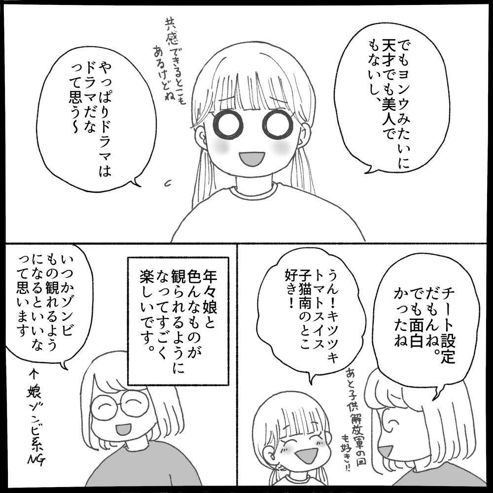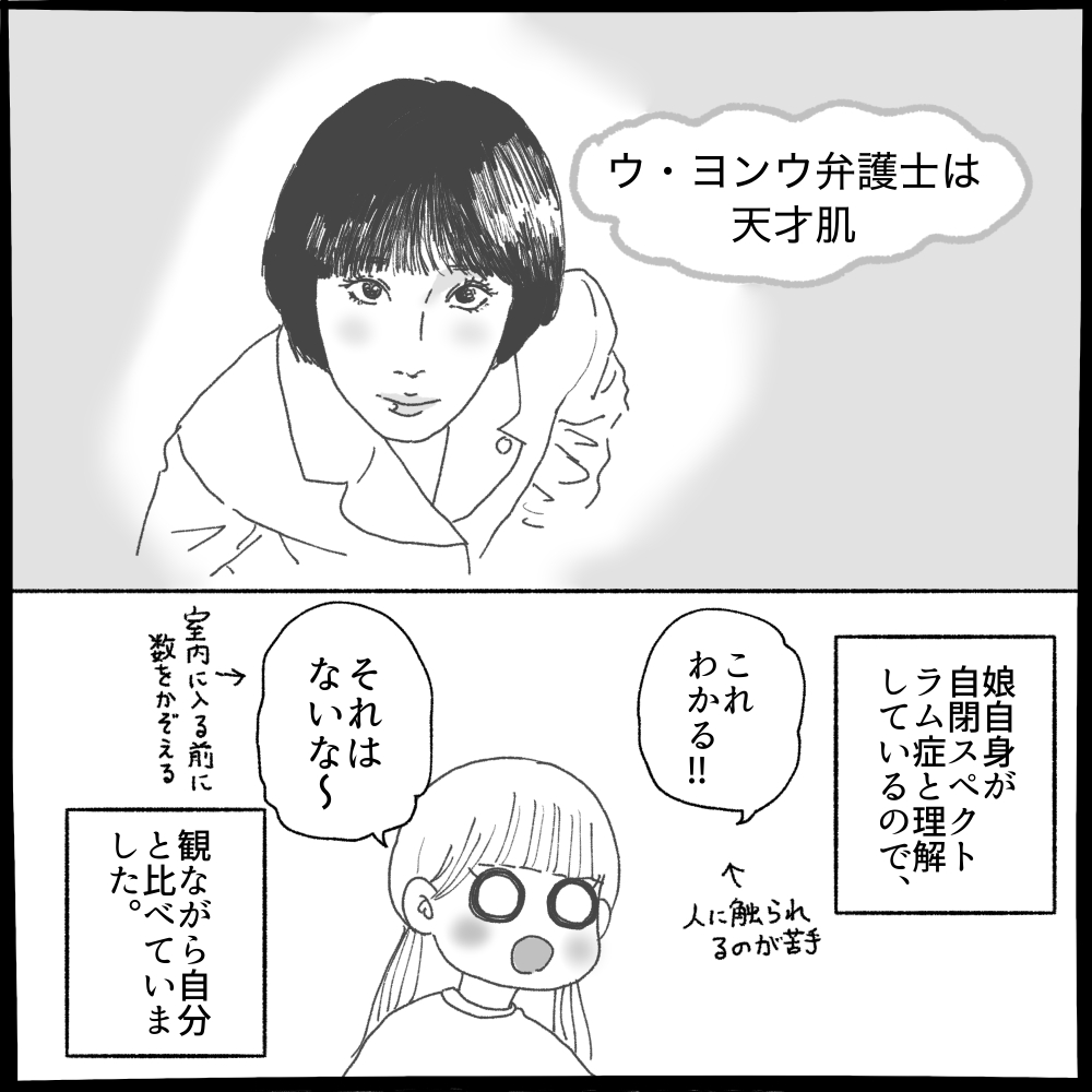 ウ・ヨンウ弁護士は1度私1人で観てて、今回は娘も一緒に☺️去年ぐらいから発達障害の種類や自分のことを理解していっている感じです。恋愛話しながら「でも騙す騙されるは発達障害なくてもおこってるけどね〜」って言ったら娘ちょっと混乱してた😂