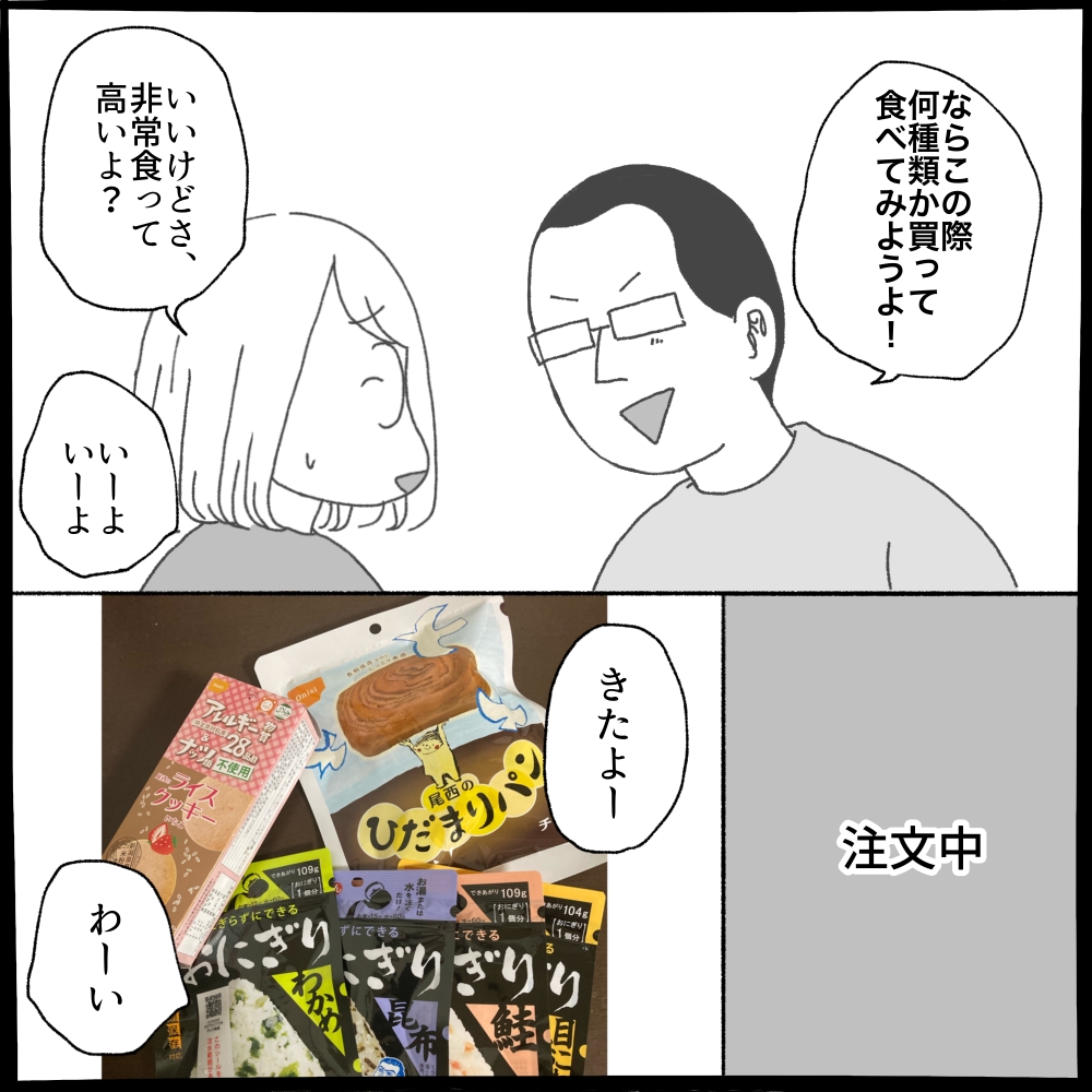 今まで水だけは用意してたんですが、今回は非常食なども用意することにしました。