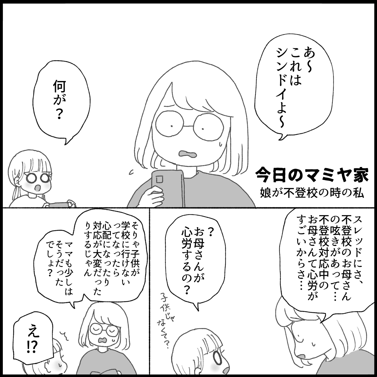 考えたら私自身が不登校の時は自分ばっかりが不幸で上手くいかないと考えていて、母親にどれだけ負担をかけてどう考えてるかまでは想像もしませんでした💦(大学生の時に心配かけてごめんねと謝りました)