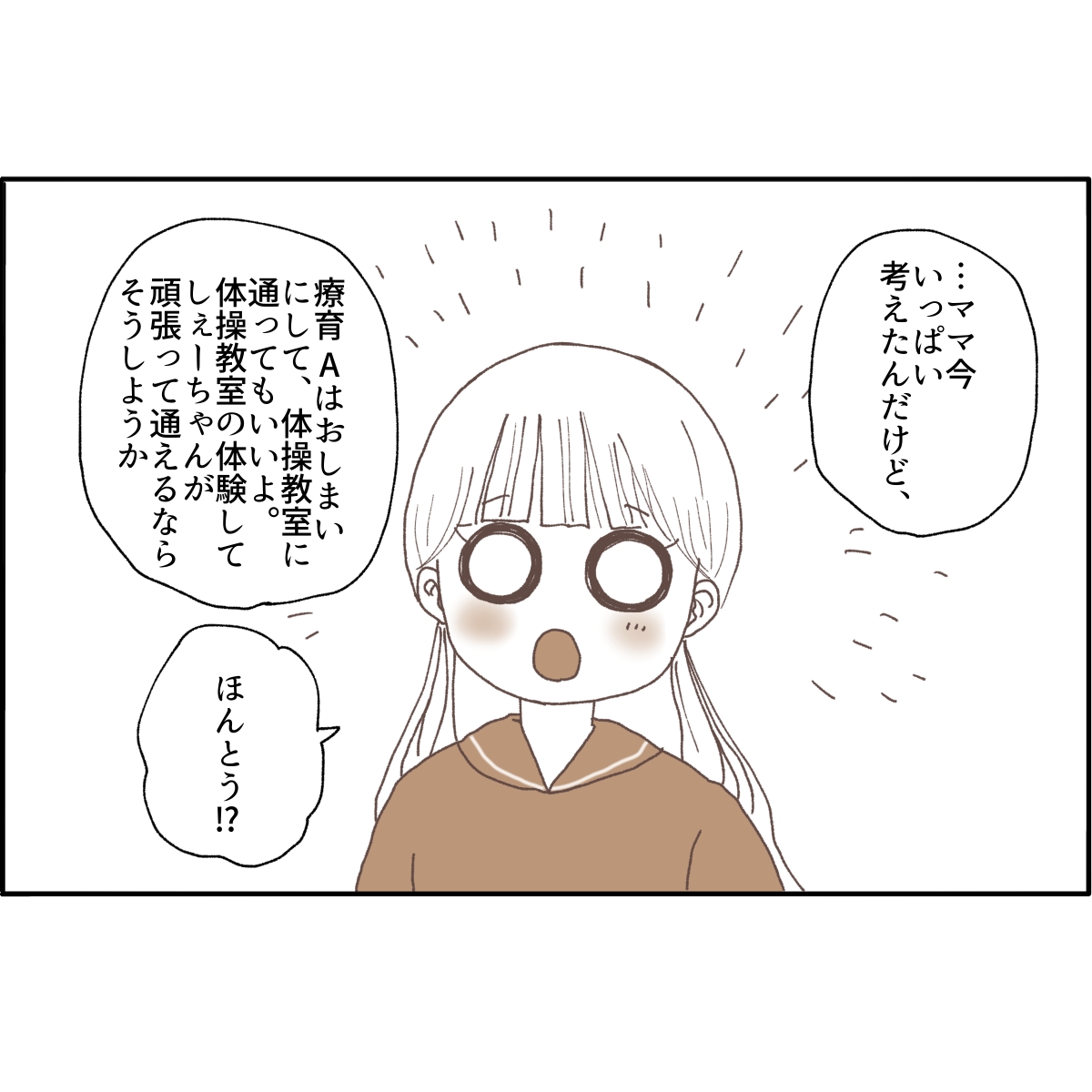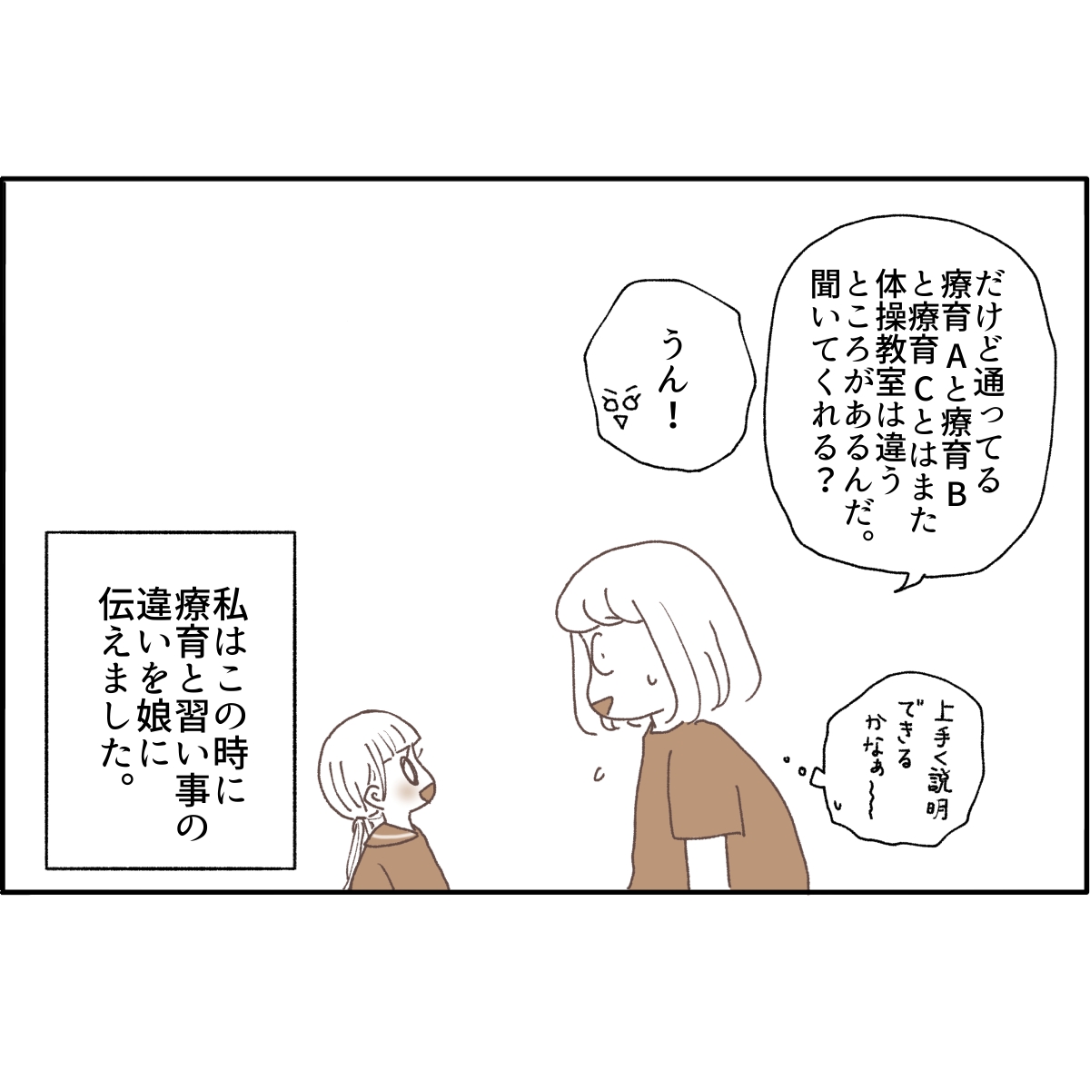 そして体操教室は一般の習い事です。私はこのタイミングで療育と習い事の違いを伝えようと思いました。