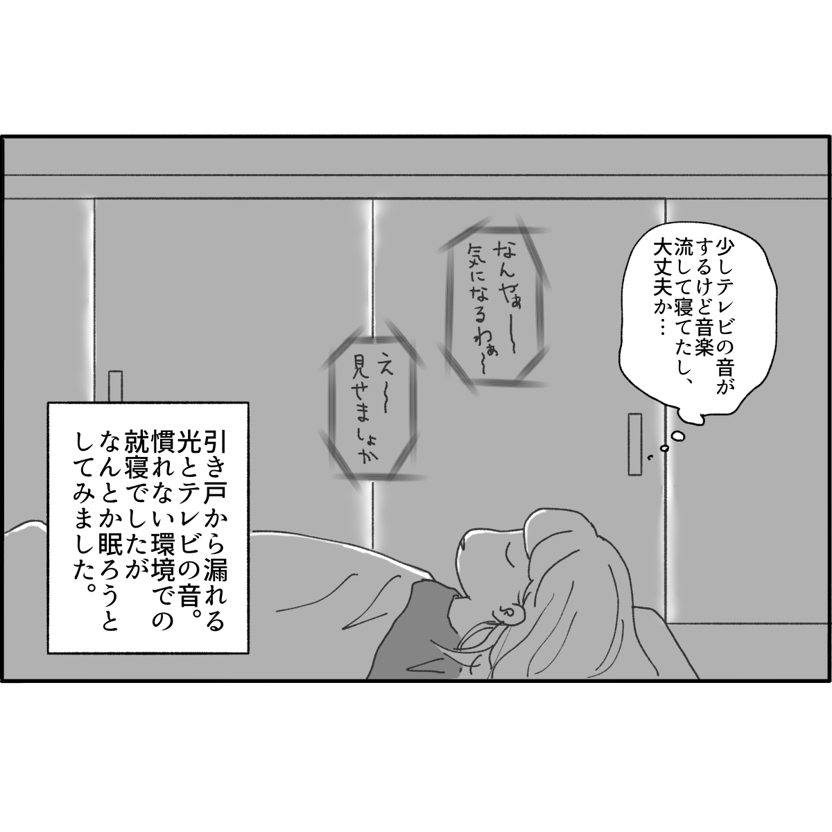 でもなんとか眠れそうな時にテレビとは違う音が聞こえてきました…