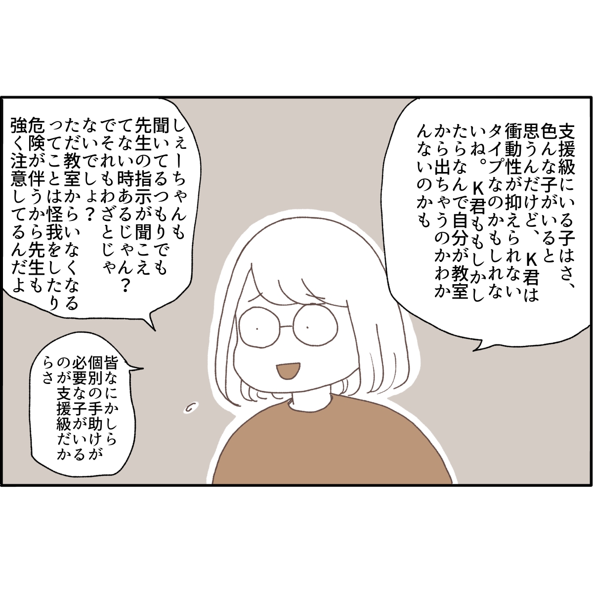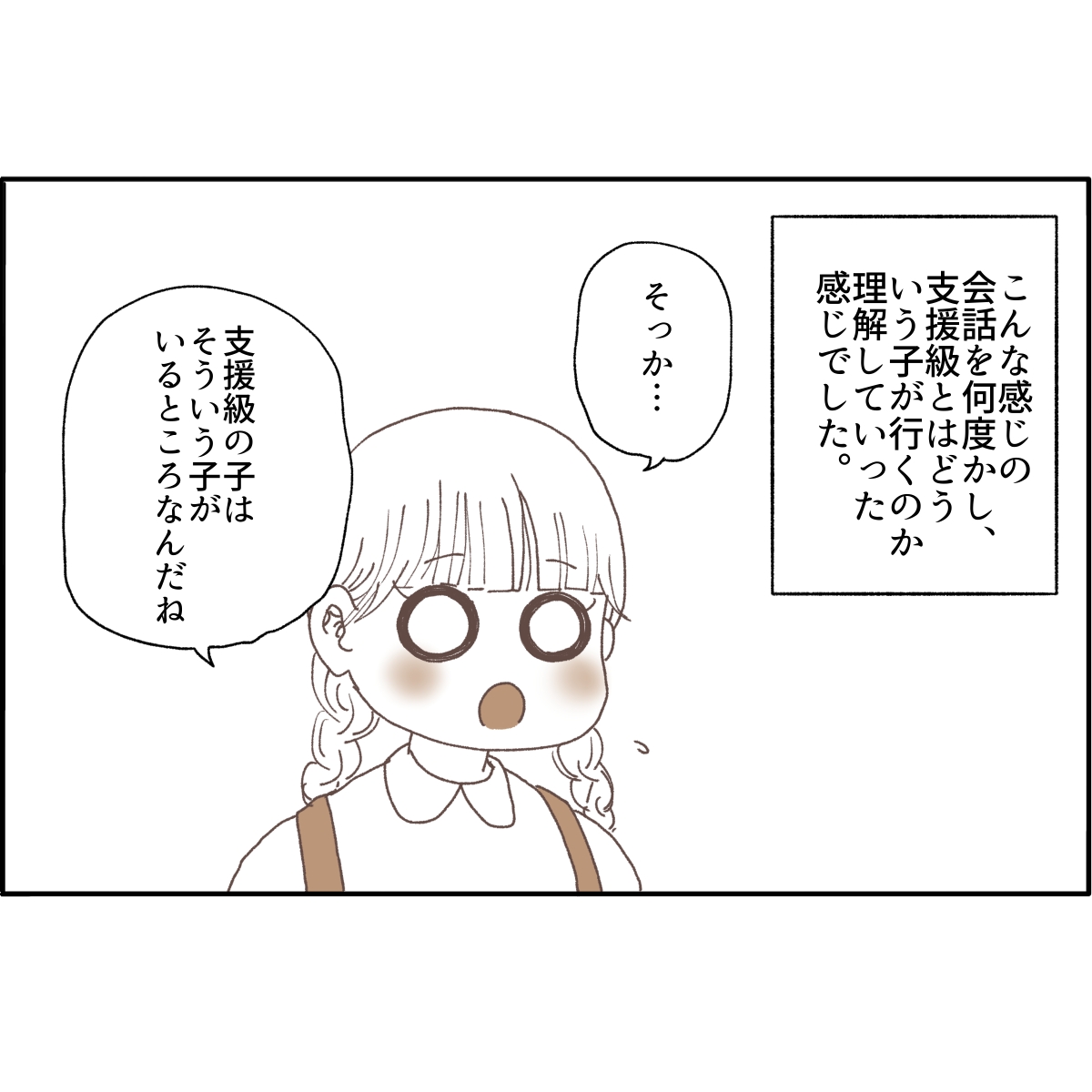 小学校に入ると支援級と普通級(支援級在籍の時は交流級って言ってました)の2クラスに在籍します。入学前にもそう伝えてますが、入学後も小出し小出しで伝えていたな〜と思います。