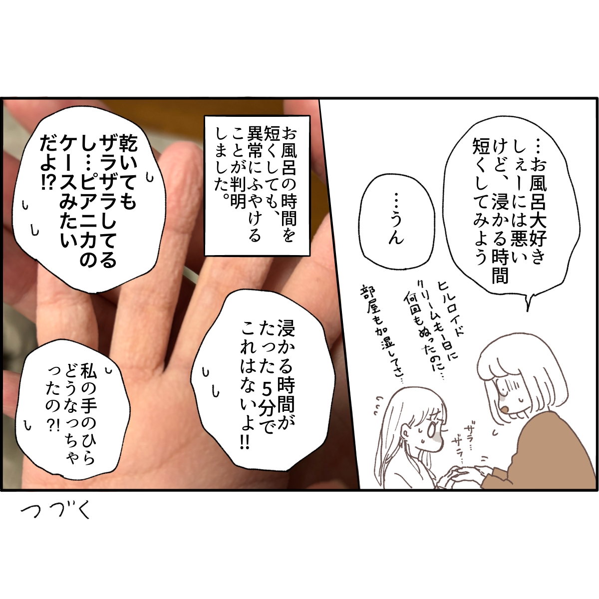 お風呂は毎日長いので手はふやけて当たりまえなんです。でもふやけ具合がなんか変で💦時間が経っても手のひらが前と違う皮膚感(ザラザラ)これは…なんかの体のSOS⁉︎ってなりました。