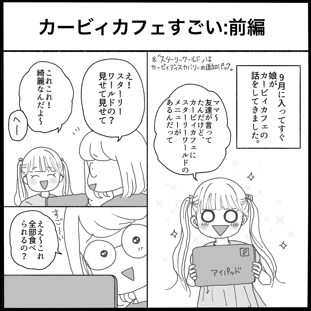 カービィカフェは前から知っていたのですが、今回のスターリーワールドのメニューがすっごいキレイで、「これ全部食べれるの⁉︎すごい、味が気になる!」ってなりました😍