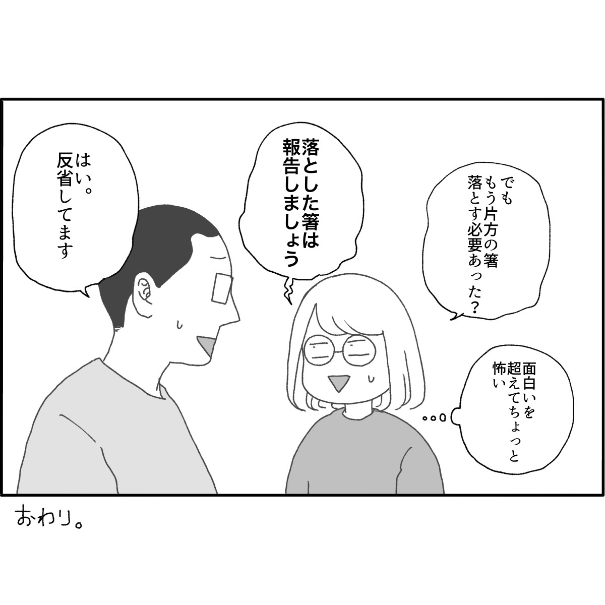 落としたところはしぇーちゃんしか届かないし、たまに物を落としちゃうのでその時「あれー箸も落ちてたじゃん」ていう流れを期待したとのことでした。